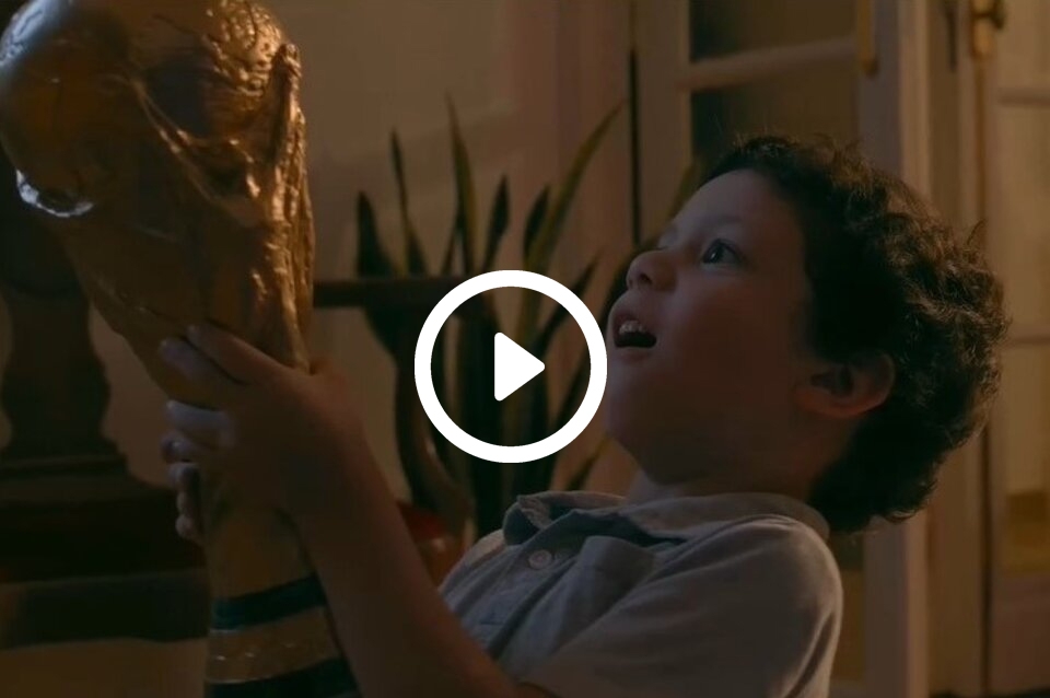 El nene corre hacia ella, la abre y ahí está la Copa del Mundo, la misma que levantaron Messi y sus compañeros el domingo pasado, y al sostenerla la mira y dice: “Gracias, Papá Lionel”, y la besa.