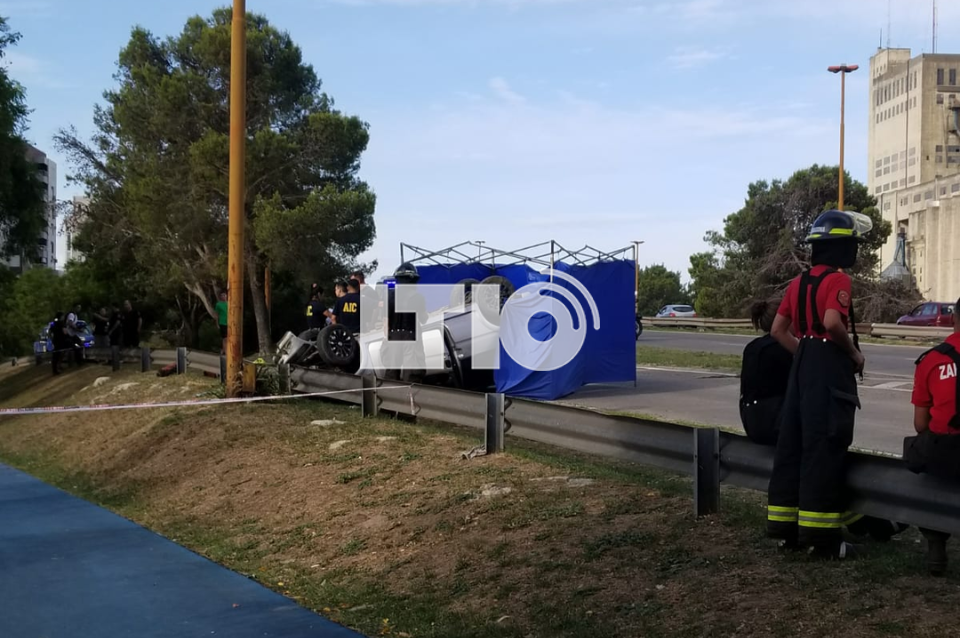 El auto, un Peugeot 205 color gris, circulaba hacia el norte y, tras volcar, quedó dado vuelta en la banquina. Trabajaban en el lugar los Bomberos Zapadores y la Agencia de Investigación Criminal.