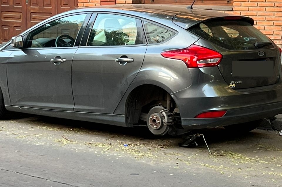 Los roba ruedas volvieron al ataque en la ciudad. Esta vez le tocó a barrio sur, donde dos vehículos amanecieron sin sus ruedas.