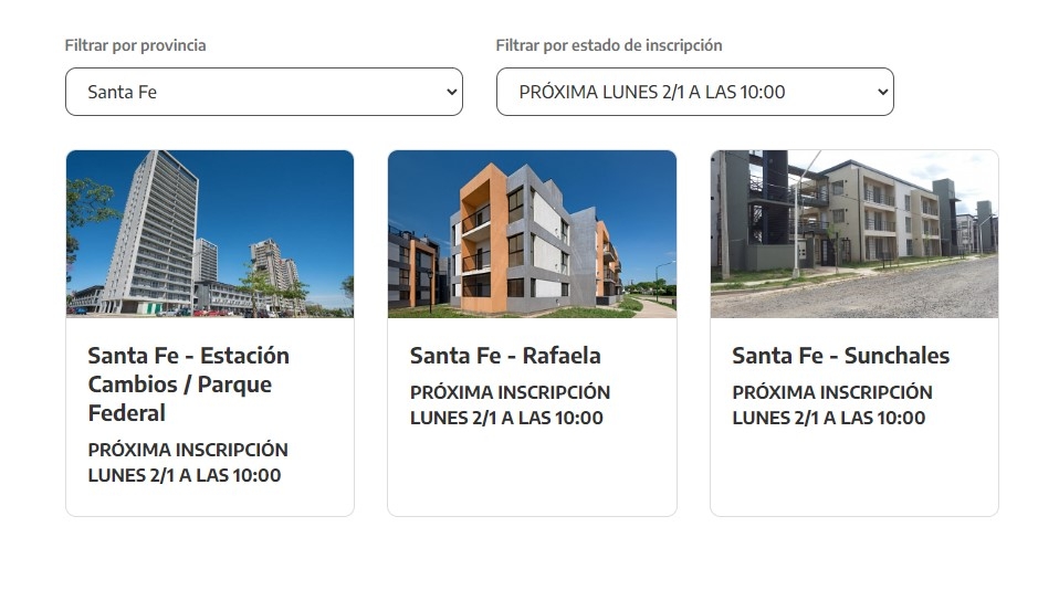 También se podrá optar por los desarrollos ubicados en, Bahía Blanca, Carmen de Patagones, Ciudad Evita, Haedo, Ituzaingó, Lincoln, Merlo, Morón, San Antonio de Areco, San Martín, San Miguel y San Nicolás (Buenos Aires); Estación Buenos Aires y Estación Sáenz (Capital Federal); Puerto Madryn (Chubut); Barrio Liceo, Cavanagh y San Francisco (Córdoba); Corrientes (Corrientes); Paraná (Entre Ríos); Jujuy (Jujuy); Posadas (Misiones); Zapala (Neuquén); Viedma (Río Negro); Tartagal (Salta); San Luis (San Luis); Río Gallegos (Santa Cruz); Estación Cambios, Rafaela, y Súnchales (Santa Fe); Santiago del Estero y La Banda (Santiago del Estero) y Río Grande (Tierra del Fuego).