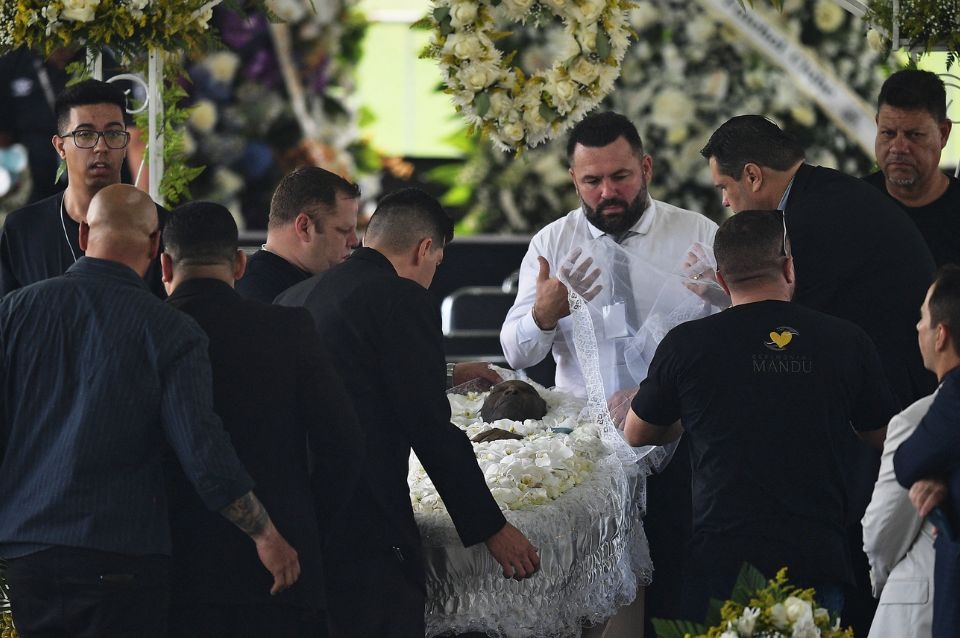 Detrás de ella, se ubicaron todos los motivos florales enviados por diferentes personalidades para homenajear al mejor futbolista brasileño de toda la historia.