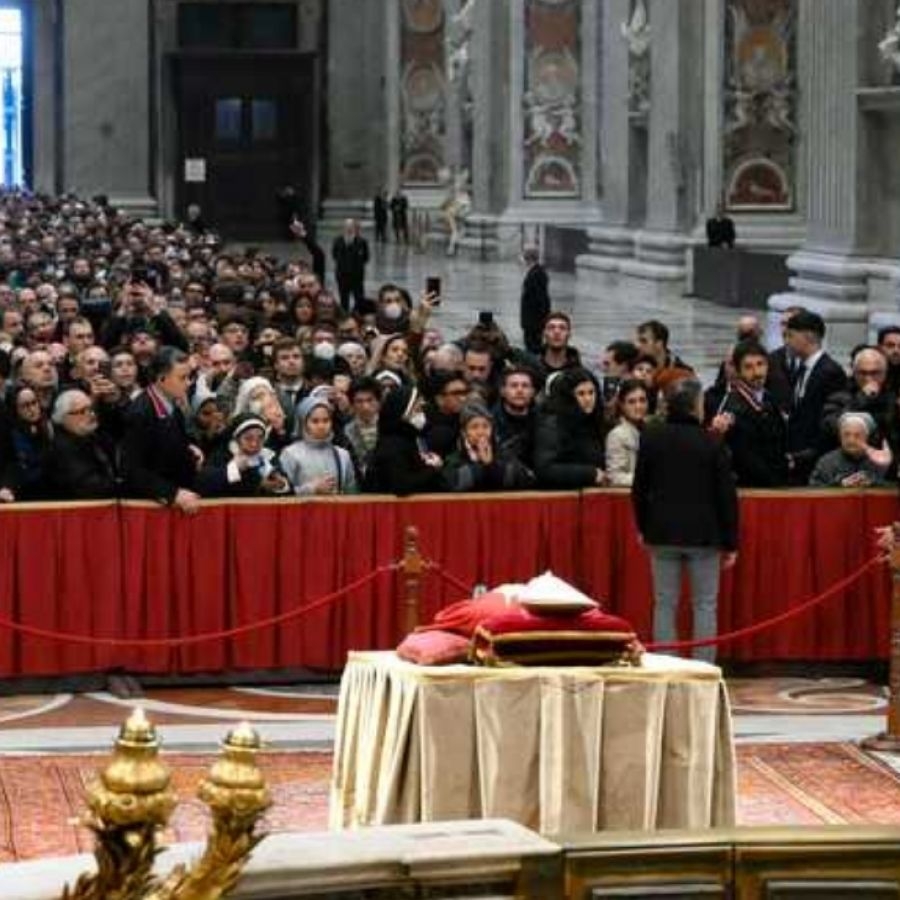 Las máximas autoridades políticas de Italia, el presidente, Sergio Mattarella, y la premier, Giorgia Meloni, abrieron minutos antes de las 9 locales (5 de Argentina) la larga procesión de fieles que busca dar el último adiós al pontífice emérito fallecido el sábado a los 95 años.