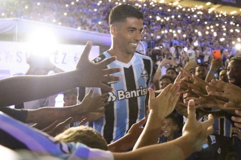 Los hinchas colmaron esta noche el estadio Arena do Gremio como si fuera un día de partido, para brindarle una emotiva y clamorosa recepción a su flamante incorporación, el delantero uruguayo Luis Suárez, que permaneció el pasado semestre en su club de origen, Nacional, de Montevideo.