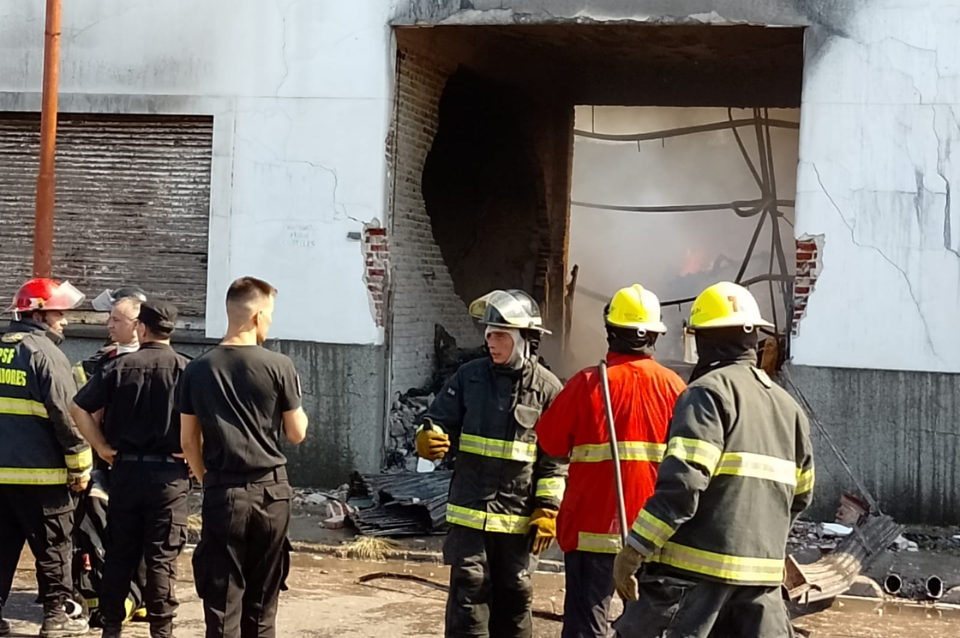 Varias dotaciones de bomberos debieron trabajar para contener las llamas del depósito de barrio Don Bosco, que contaba con material inflamable de insumos de limpieza y pañales.