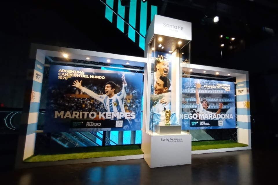 La pieza es una réplica que pertenece a la colección permanente del espacio y, en ocasión de la Copa del Mundo Qatar 2022, se exhibe en un stand diseñado especialmente. El mismo muestra a los laterales los dos campeonatos del mundo que conquistó la albiceleste, Argentina 1978 y México 1986 y, en el centro la imagen de Messi junto a Di María y el trofeo, la tercera copa conquistada por la selección nacional.