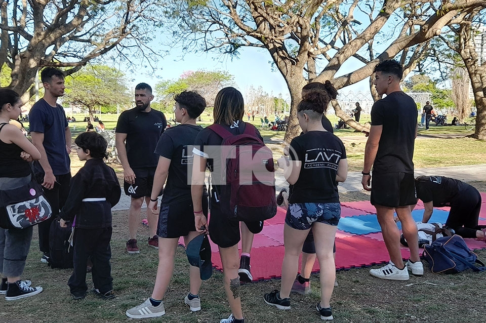 En una tarde de Domingo primaveral en el Parque Federal los transeúntes se aglomeraron para ver una exhibición de artes marciales de la academia de artes marciales mixtas “LAVT” (Luis Aragón VillalbaTeam).