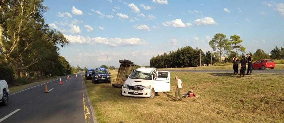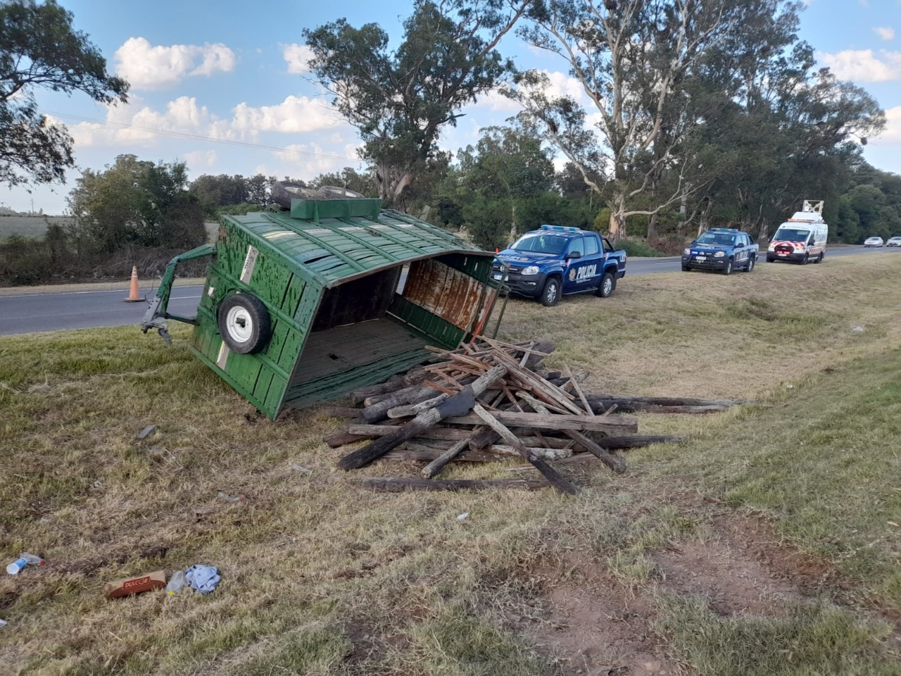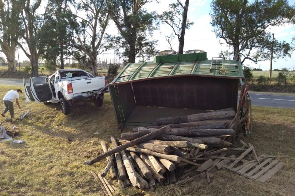 Sucedió en el kilómetro 8.5, en jurisdicción de Colonia San José, donde un hombre de unos 70 años que conducía una camioneta Toyota modelo Hilux, volcó tirando un acoplado con postes de madera.