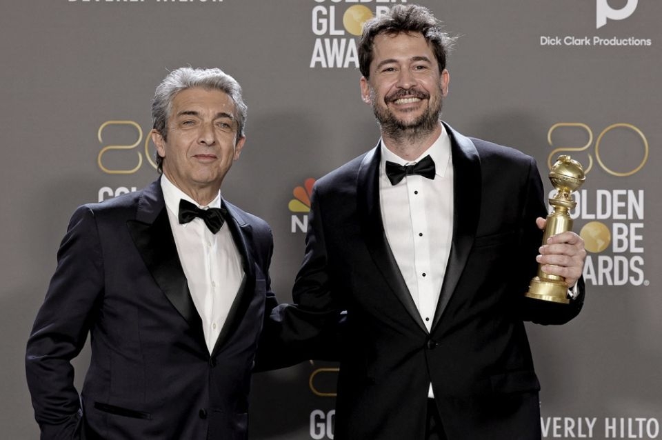 "Para la gente de Argentina, después de ganar el campeonato del mundo de fútbol, esto es una gran alegría", expresó Ricardo Darín, tras pedir disculpas y romper el protocolo de la celebración llevada a cabo en el hotel Beverly Hilton, y hablar en castellano.
