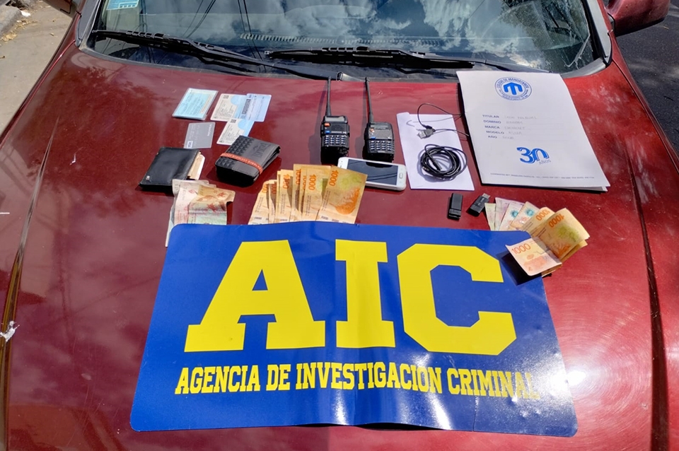 Los pesquisas de la AIC, mientras realizaban labores de patrullaje preventivo, divisaron a tres personas en el interior de un vehículo, sobre calle Salta entre Urquiza y Francia. Tras la maniobra y con la colaboración de otro equipo de la AIC se inicia una persecución en la zona céntrica logrando interceptar la marcha del rodado de color Bordó y detenerlos. Además le secuestraron dinero, dos equipos inhibidores de señal, tres billeteras con documentación, un dispositivo celular y un automóvil marca Chevrolet Astra de color bordó.