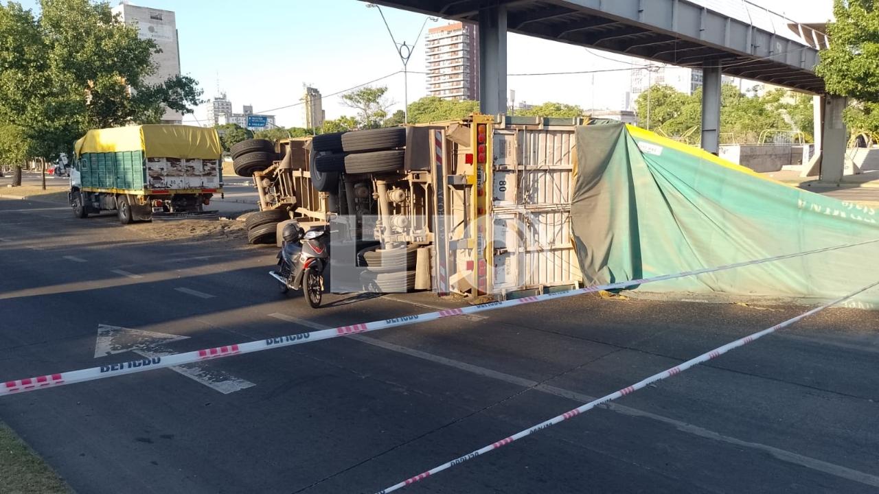 Al ser un camión particular, el vehículo debía permanecer en el suelo hasta que llegue la el seguro y grúa que lo asistiría para acomodar el acoplado.