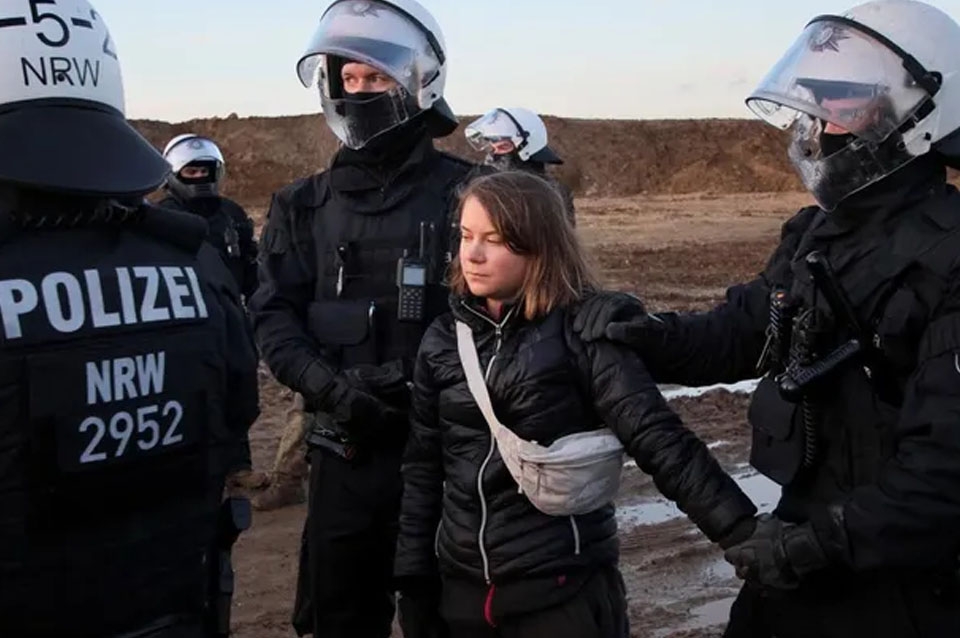 La joven líder ecologista sueca Greta Thunberg fue detenida brevemente este martes en Alemania junto a otros manifestantes durante una protesta contra la expansión de una mina de carbón en el oeste del país.