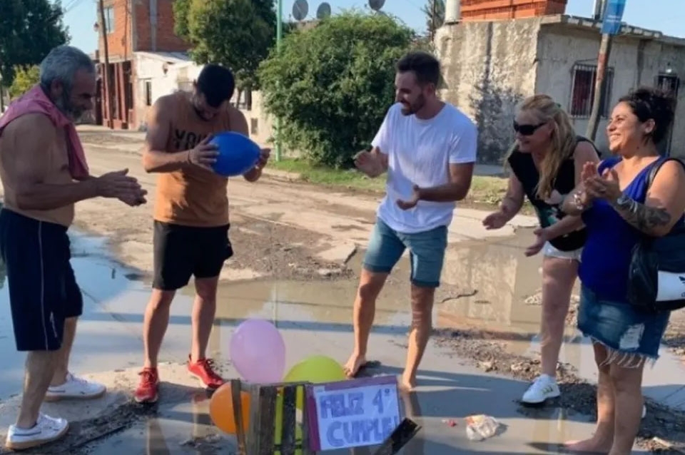 A modo de ironía y para visibilizar el reclamo, decidieron festejar el cumpleaños del bache al que bautizaron "Juan Pozo".
