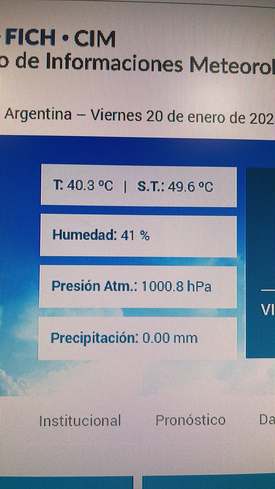 La ciudad de Santa Fe es un horno y sensanción térmica tocó el máximo de 49.6º en horas del mediodía según el Centro de Informaciones meteorológicas de la FICH UNL.