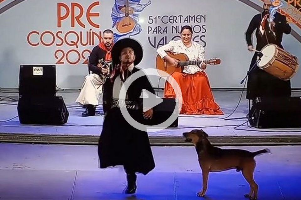 Durante una presentación en el Pre Cosquín de Córdoba, el solista de malambo Franco Berón fue sorprendido por la aparición inesperada de un perro en el escenario.