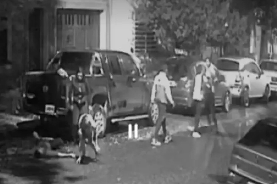 Las imágenes fueron captadas por las cámaras de seguridad del lugar, que muestran el momento en el que un grupo se enfrenta con otros chicos y en tan solo segundos uno de los jóvenes quedó desvanecido en el piso tras recibir varias patadas, algunas en la cabeza.