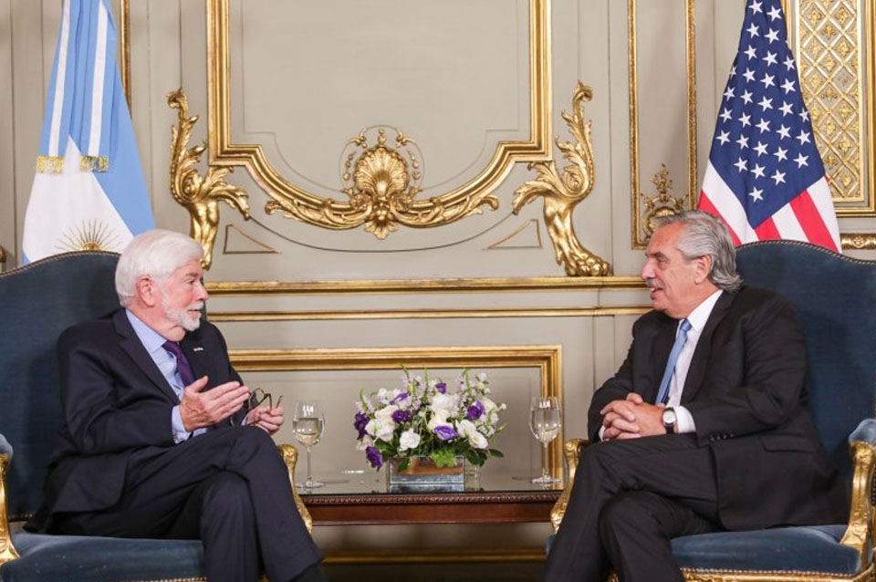 El presidente Alberto Fernández se reunió hoy con el asesor presidencial para las Américas de los Estados Unidos, Christopher Dodd, para profundizar y ampliar los vínculos entre ambos países. El funcionario norteamericano participó ayer de la Cumbre de Estados Latinoamericanos y del Caribe (CELAC), que se realizó en la ciudad de Buenos Aires.