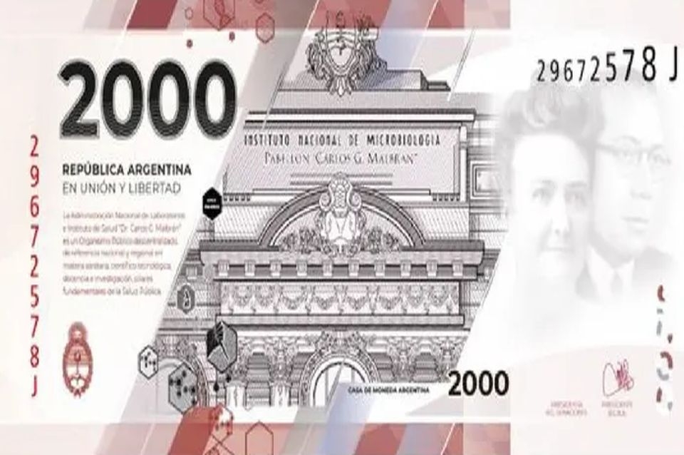 Los nuevos billetes de $2000 tendrán como protagonistas al Instituto Malbrán, y a la doctora Cecilia Grierson y al doctor Ramón Carrillo, precursores en el desarrollo de la medicina en nuestro país, informó esta tarde el Banco Central.