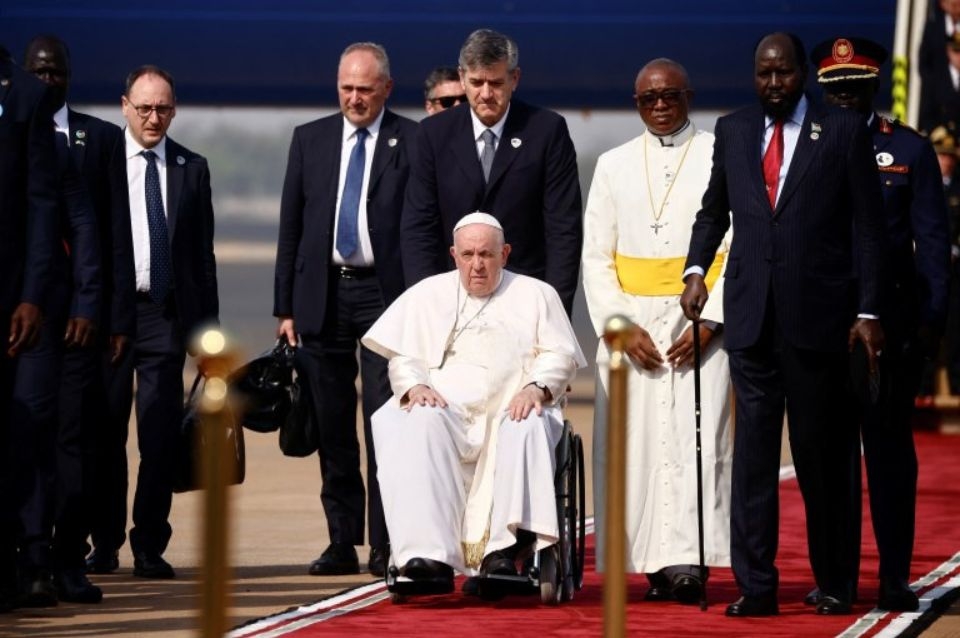 El Papa Francisco llegó a Sudán del Sur, una joven nación africana que lucha contra la guerra, la pobreza y las inundaciones, para una "peregrinación de paz" conjunta sin precedentes con sus homólogos anglicanos y presbiterianos escoceses.