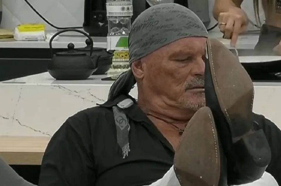 Aprovechando que sus compañeros charlaban y no lo estaban mirando y mientras tomaba su clásico té, Alfa llevó uno de sus dedos a la cabeza en claro gesto al público de que piense a la hora de votar.