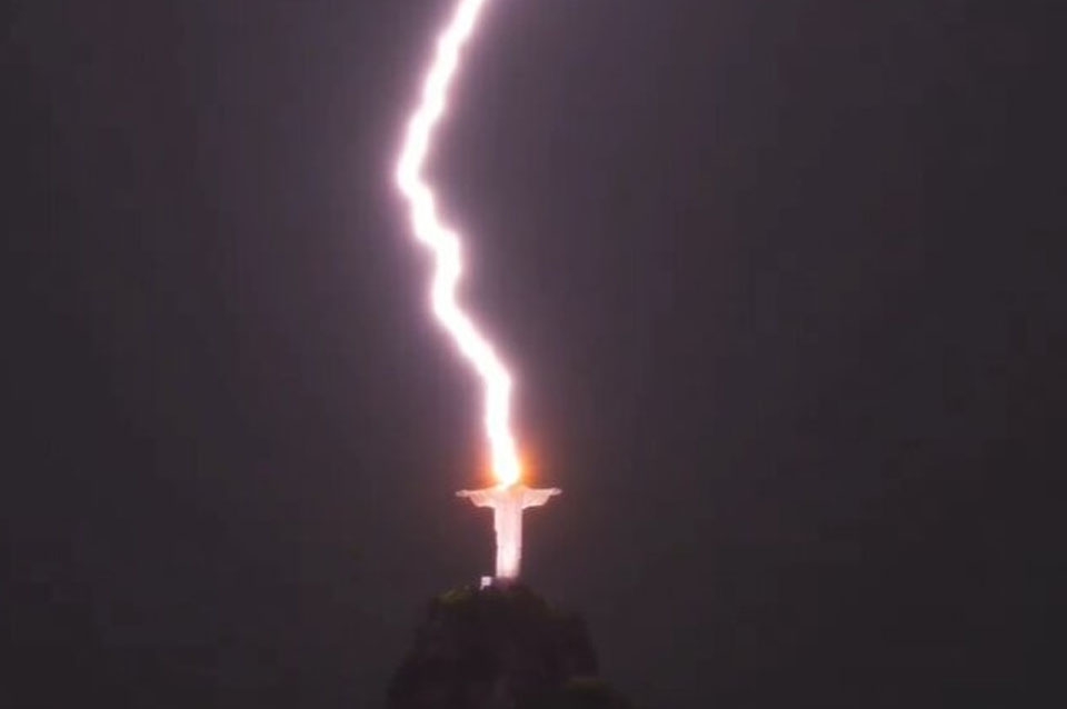 Impresionante imagen: un rayo impactó sobre el Cristo Redentor