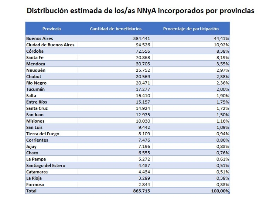 La medida tomada en conjunto permite la incorporación de 900 mil niños, niñas y adolescentes al Sistema Único de Asignaciones Familiares (SUAF), que comprende la Asignación Universal por Hijo (AUH), el Salario Familiar y la Deducción de Ganancias.