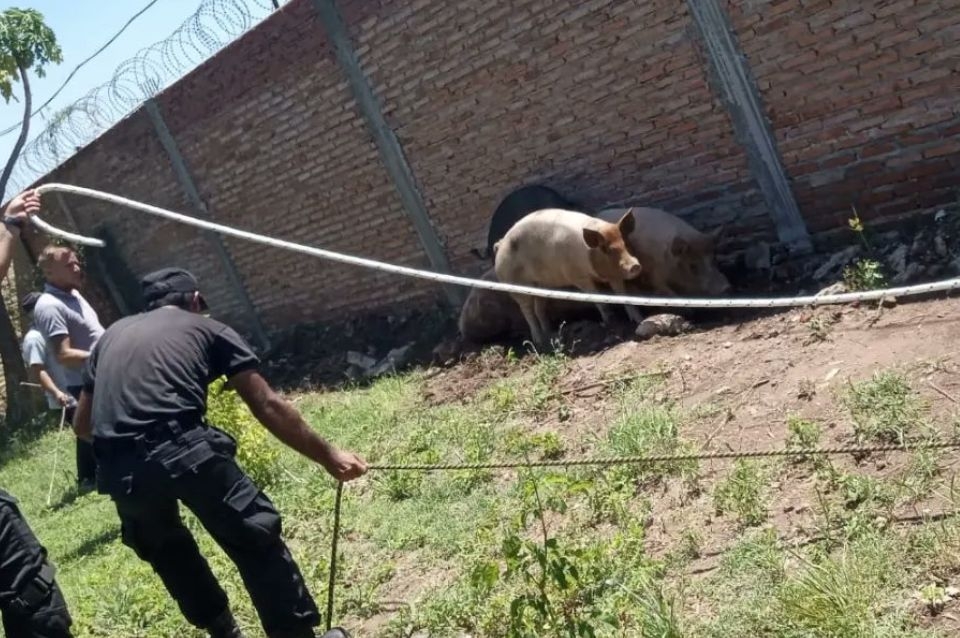 El jueves de la semana pasada, la Dirección de Control y Convivencia debió colaborar en el rescate de animales. En colaboración con personal de IMUSA de la Secretaría de Ambiente, COBEM,y de la Policía Comunitaria lograron capturar a cuatro escurridizos chanchos que caminaban sueltos por la zona de Avenidas Gorriti y Peñaloza.