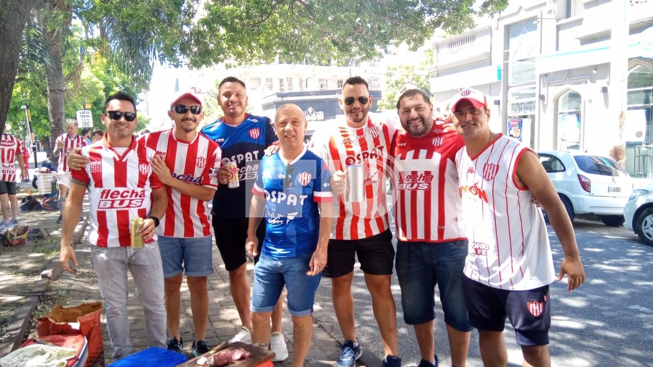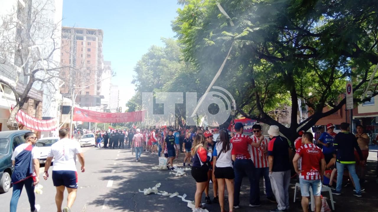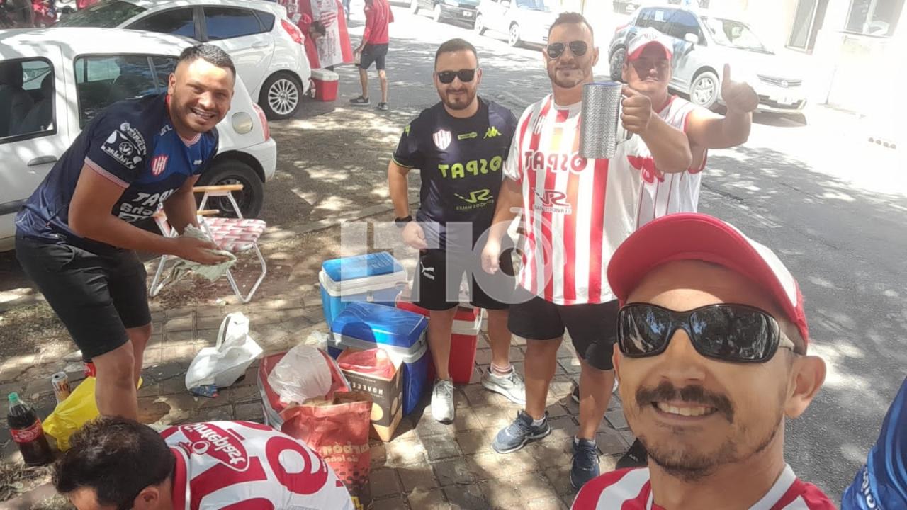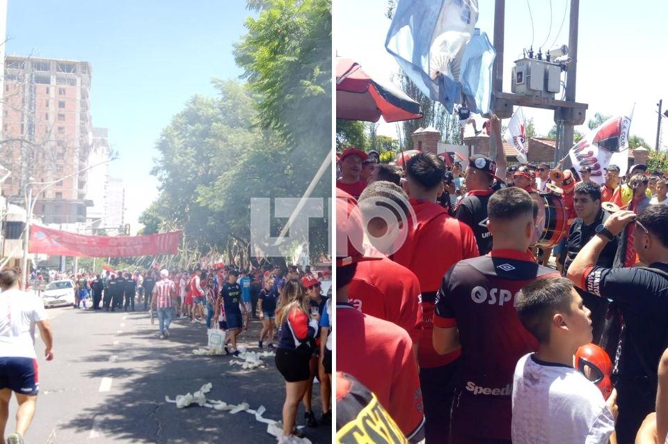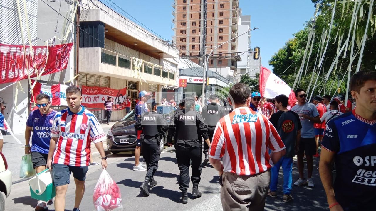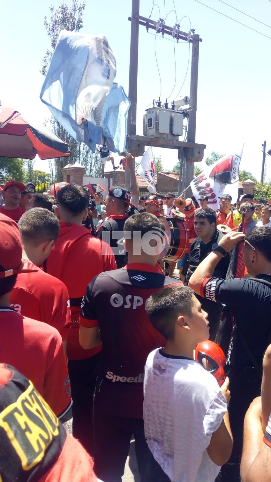 Los hinchas de tatengues ocupan Boulevard como lo hacen tradicionalmente, mientras que los sabaleros están en el predio de la Autopista, depsidiendo a los jugadores,