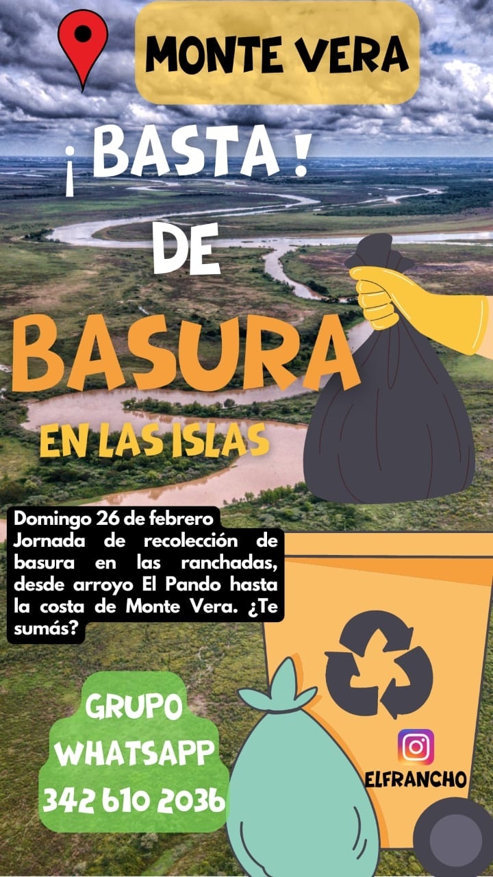 Cada vez son más las personas que visitan las islas de Monte Vera y alrededores, sin embargo también creció el nivel de basura que se tira. Con el fin de concientizar decidieron organizarse y poner manos a la obra. Francisco Fernández, uno de los integrantes de este grupo comentó que están preocupados por que "cada vez hay más basura en la zona de islas y es feo armar una carpa y encontrar tanto desperdicio, residuos, botellas y latas".