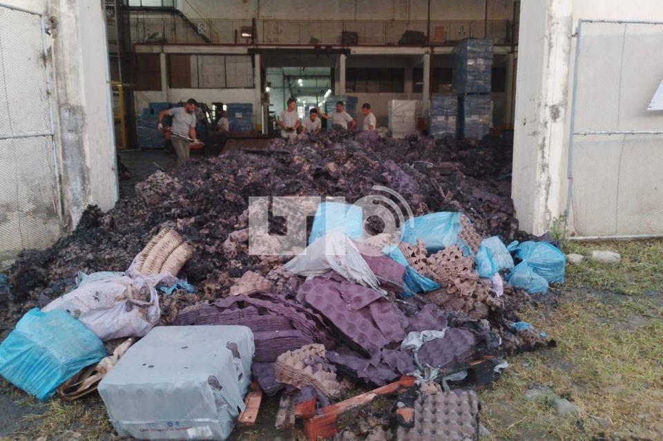 Un empleado de la empresa contó al Móvil de LT10 que el fuego se produjo por las altas temperaturas que provocaron que 34 fardos de 120 kilos de cartón ardieran.