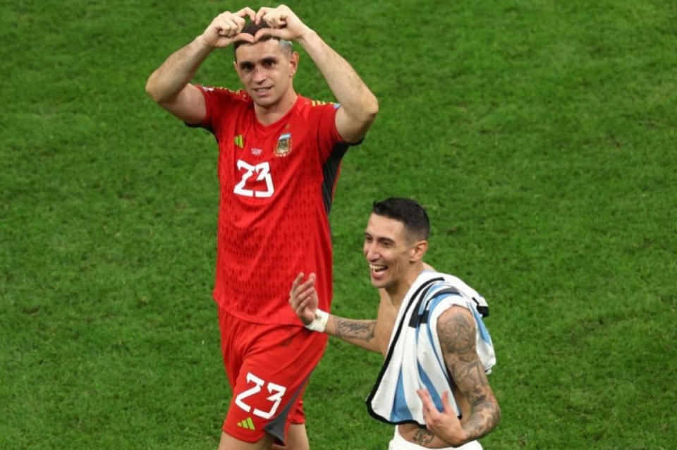 "Siento el cariño de la gente y también veo a los chicos en los cumpleaños, haciendo el baile, con las banderas en la cabeza. Me emociona que los chicos quieran usar mi camiseta", contó el Dibu en una entrevista con la radio Urbana Play.