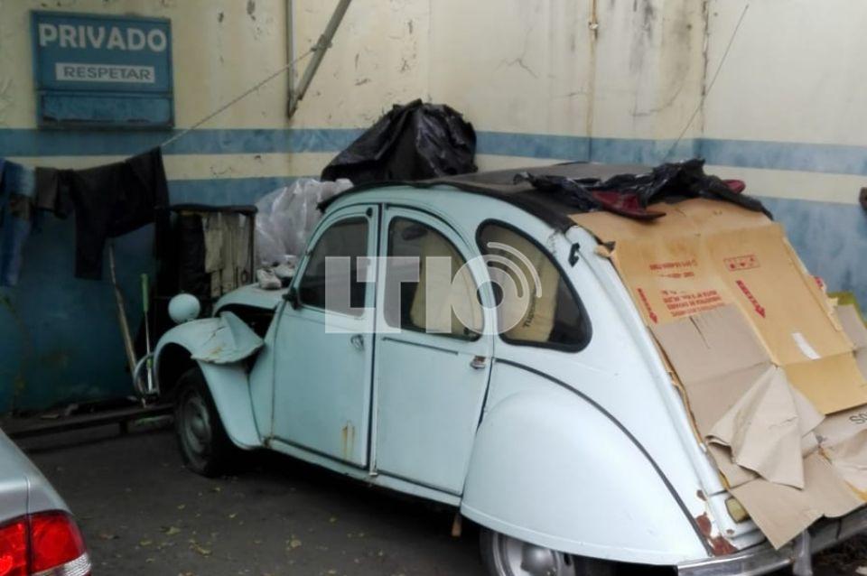 Según contó un comerciante de la zona, esta persona se había instalado dentro de una Renoleta estacionada dentro de un sector de cocheras de una imprenta.