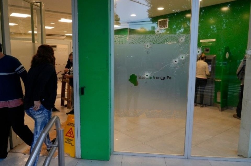 Otra balacera a un banco. Anoche, fue atacado el Nuevo Banco de Santa Fe, en Grandero Baigorria, en cuyo frente quedaron 9 impactos de bala. Los agresores dejaron una nota amenazante dirigida al ex ministro de Seguridad provincial, Maximiliano Pullaro.