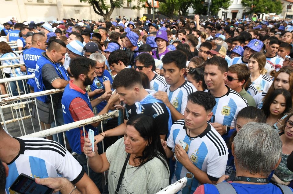 Una vez ubicados, cada asiento o lugar de la popular fue ocupado por una camiseta argentina. Alguna que otra riverplatense, tal vez por la localía, o de Newell's, quizás por Messi y Maradona, se camufló entre tanto albiceleste, pero fueron una verdadera rareza.
