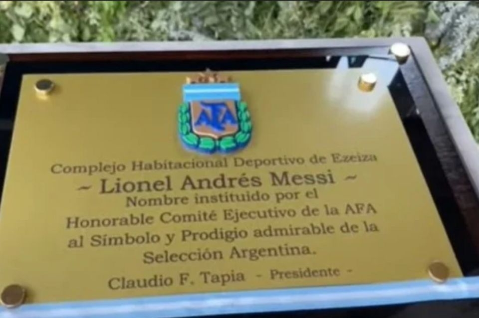 "Complejo Habitacional Deportivo de Ezeiza Lionel Andrés Messi, nombre instituido por el honorable Comité Ejecutivo de la AFA al símbolo y prodigio admirable de la Selección Argentina", es la inscripción de la placa.