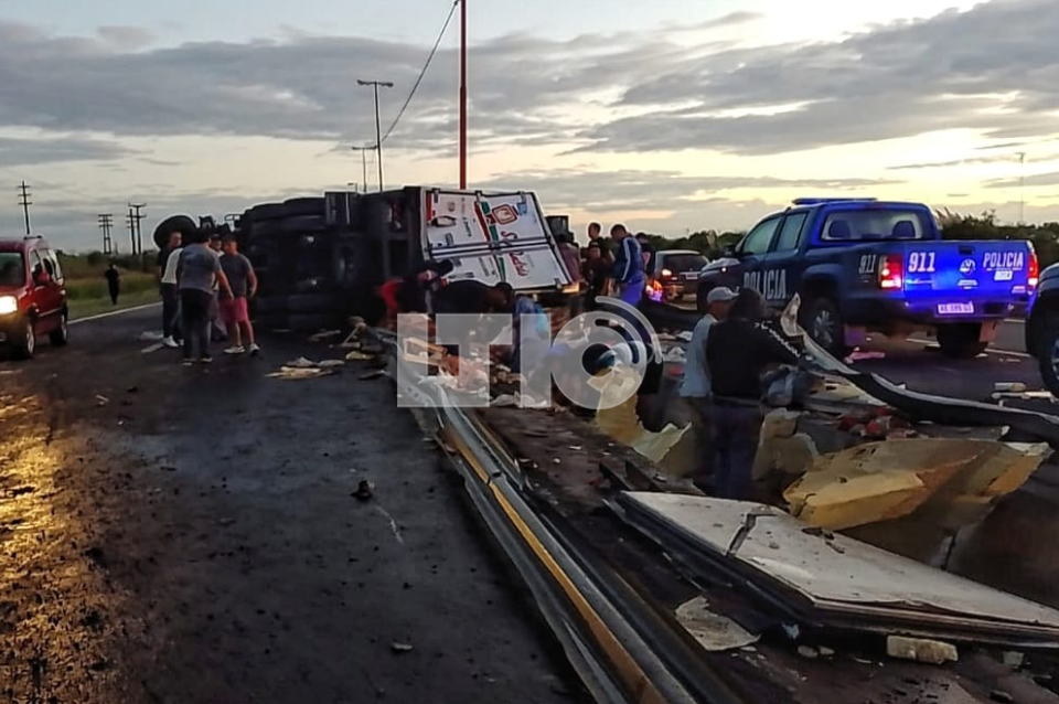 Cerca de las 4:30 de la mañana se produjo un accidente en Circunvalación a 500 metros del cruce con calle Mendoza en donde volcó un camión que transportaba pollos.
