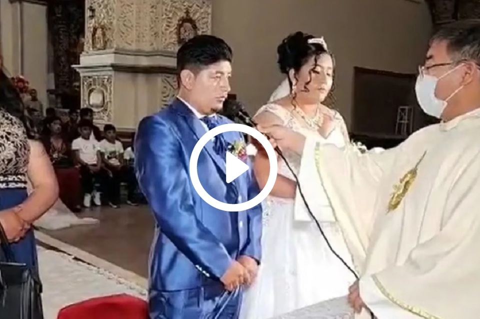 No obstante, los intentos del religioso tuvieron éxito. El prometido, luego de varios minutos, señaló que sí deseaba casarse con su pareja y dijo que estaba ahí por voluntad propia.