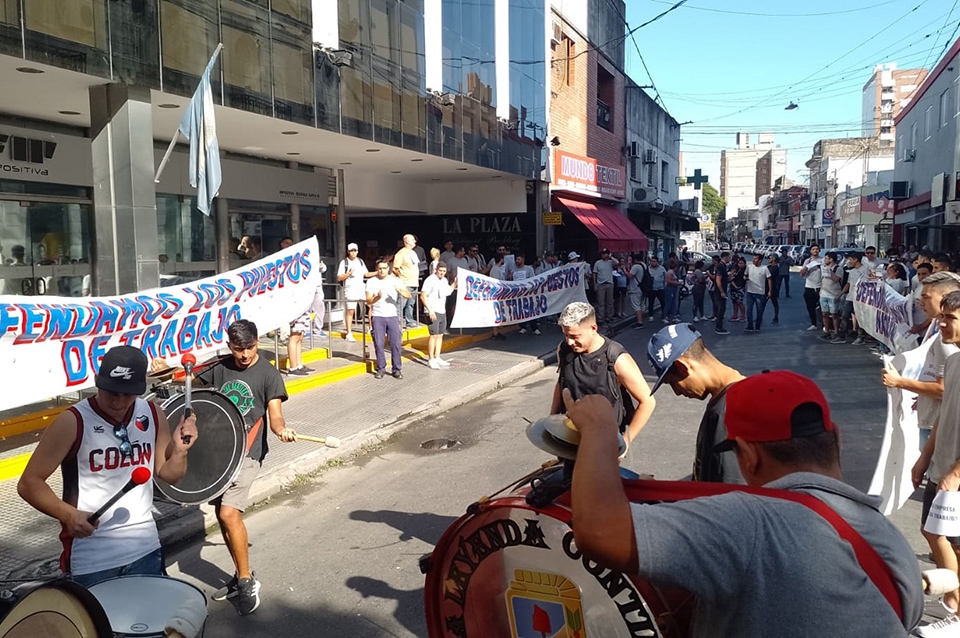 Un grupo importante de trabajadores tabacaleros protestan en el microcentro de la ciudad con un corte de calle debido a la suspensión en los puestos de trabajo de 80 empleados.