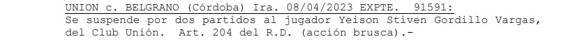 Este jueves se expidió el Tribunal de Disciplina de la AFA y había expectativa en Unión por la posible sanción al colombiano Yeison Gordillo por su expulsión ante Belgrano. Por el tenor, había muchas chances de que le dieran más de una fecha, algo que terminó pasando.