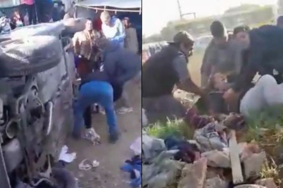 En las imágenes, que se dieron a conocer a través de las redes sociales, se observa como quedó la feria ubicada en el barrio Alpino, las personas heridas tiradas en el pasto y el auto Volkswagen Gol dado vuelta.