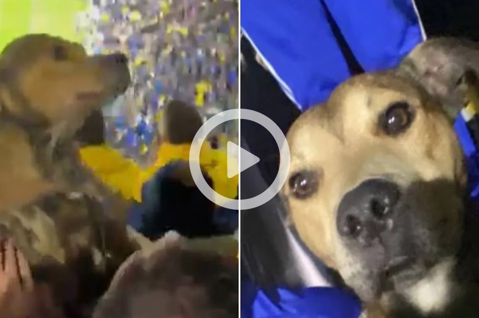 Pero hubo un invitado especial, misterioso. Aún no se sabe cómo entró, pero allí en la tribuna donde se ubica la barrabrava del Xeneize dijo presente un perro que hasta tenía un chaleco para mitigar el frío.