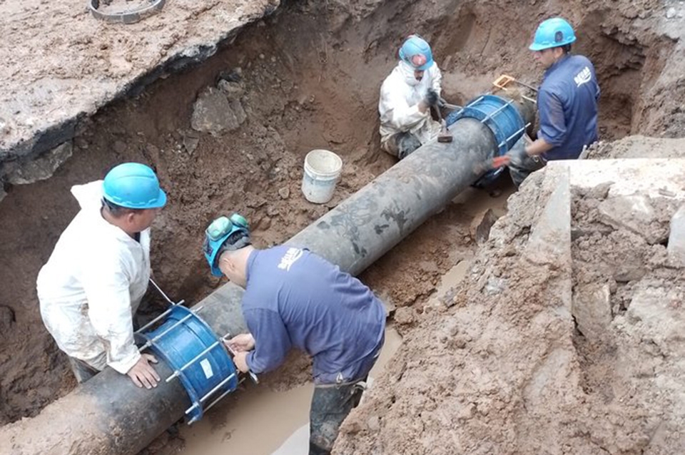 Un grupo de operarios trabajó en el lugar para dar con el problema y se dispuso la reparación de una cañeria de la red de agua. Lo que se cambió fue un tramo de cuatro metros de uno de los caños principales que reparten agua potable en toda la zona.