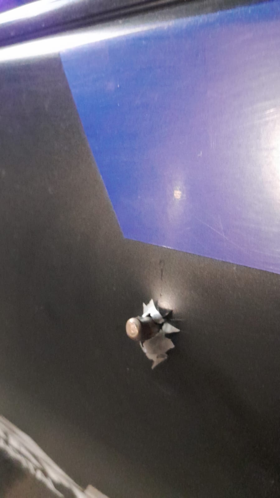 Hay daños en uno de los patrulleros, donde se constataron dos impactos de bala que serían de una 9mm. Uno impactó en la puerta trasera derecha y quedó alojado en la puerta izquierda trasera.