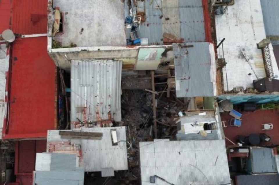 “El lugar lo hemos clausurado. Es un edificio que no tiene una estructura de hormigón, tiene una estructura de mampostería portante hierro. Una de las vigas mayores donde apoyaba todo el peso de una construcción clandestina de la terraza cedió y está totalmente desprendida, y cayeron dos lozas. Y todo lo que estaba apoyado en esas lozas quedó en el aire”, indicó el director general de la Guardia de Auxilio.