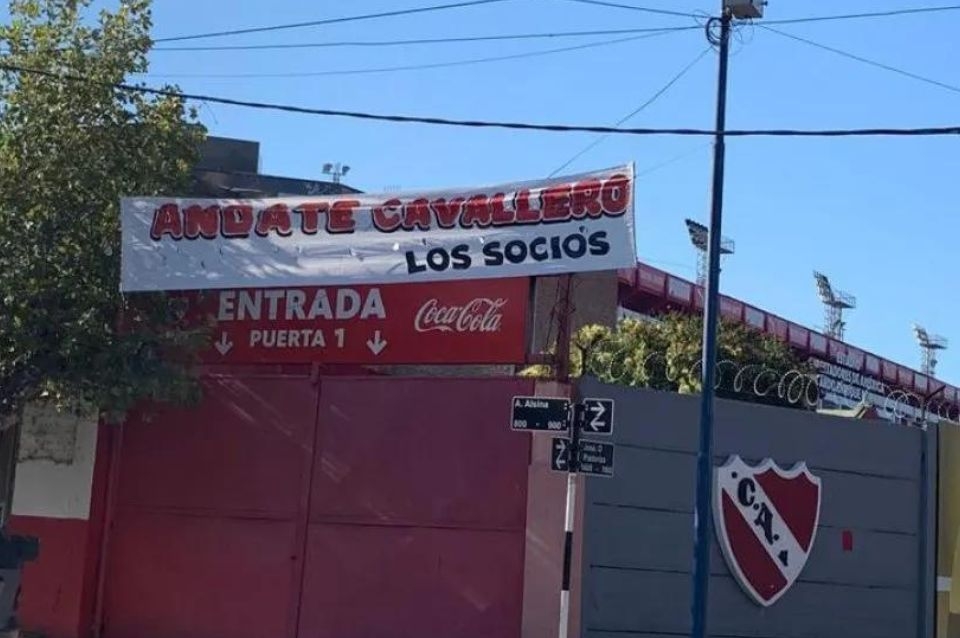 "Andate, Cavallero", reza el cartel que fue colgado en la intersección de las calles Alsina y Pastoriza, en uno de los accesos al estadio del Rojo. Esta no es la primera vez que el mánager es uno de los apuntados por los simpatizantes.