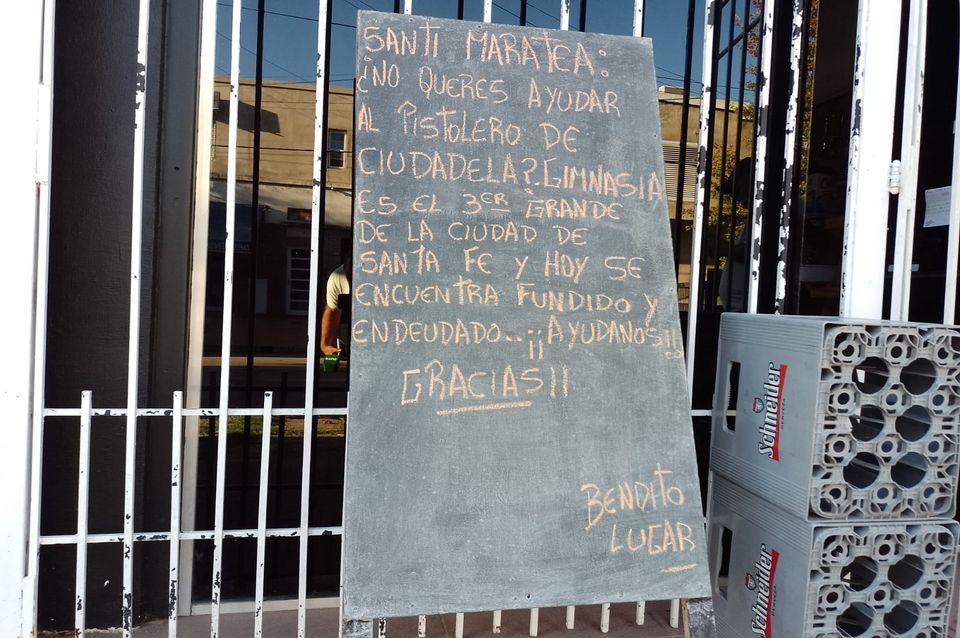 En este caso, el comerciante escribió: Santi Maratea, ¿no querés ayudar al Pistolero de Ciudadela? Es el tercer grande de la ciudad y hoy está fundido y endeudado. Ayudanos”.