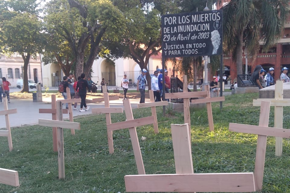 Albornoz comparó la inundación de hace 20 años con los padecimientos que las clases populares tienen hoy en día. "Hoy vivimos una realidad casi iguala la del 2003. Por esos seguimos luchando y cada 29 en la plaza nos abrazamos para darnos fuerzas; porque por más cansados que estemos tenemos que luchar por aquellos que no están, por los que lucharon con nosotros y ya no están. Que se acabe la impunidad es tener justicia para Uriel Castillo un bebé de 12 días que falleció frente a la cancha de Colón. Hoy Vanesa llegó a la plaza por primera vez en 20 años. Ella nos dijo que quería estar en la plaza por su hijo y nosotras le dijimos que nunca más iba a estar sola".
