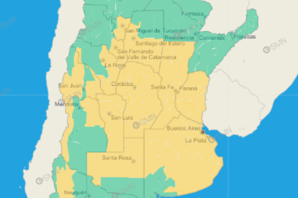 El Servicio Meteorológico Nacional emitio la mañana de este domingo un alerta para gran parte del país, incluida toda la provincia de Santa Fe.