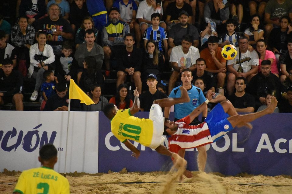 A lleno total comenzaron las finales de la CONMEBOL Liga de Evolución de Fútbol Playa en la Costanera Oeste de Santa Fe. Las tribunas totalmente colmadas dieron un marco acorde a lo que es el enfrentamiento entre la selección de Brasil, primera en el ranking mundial y Paraguay, quinta en el escalafón.