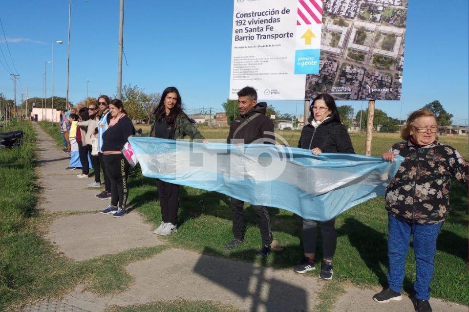 A través de un abrazo simbólico realizado en la mañana de este miércoles, vecinos de barrio Transporte manifestaron su preocupación en torno al playón recreativo situado en 1° de Mayo al 8000.
