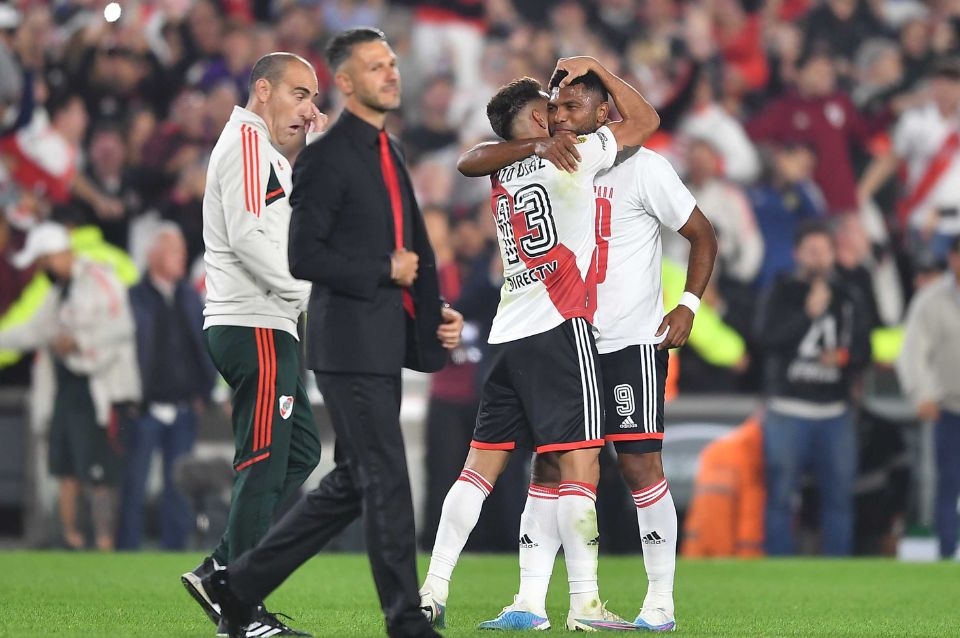 River Plate le ganó a Boca Juniors por 1 a 0 con un gol señalado de penal por el colombiano Miguel Borja en el segundo minuto de descuento y el superclásico terminó en una batalla campal entre los futbolistas de ambos equipos porque los visitantes se molestaron por la forma de festejar esa conquista de algunos jugadores millonarios, y esto derivó en tres expulsados por equipo (dos suplentes del local) y el técnico xeneize, Jorge Almirón.